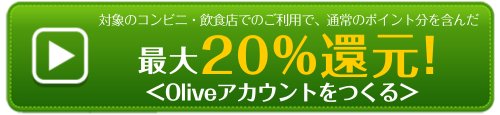 Oliveフレキシブルペイは簡単な条件(Vポイントアッププログラム)の達成と、対象のコンビニ・飲食店でのスマホのタッチ決済で、通常のポイント分を含んだ最大20%ポイント還元にできるということですね。