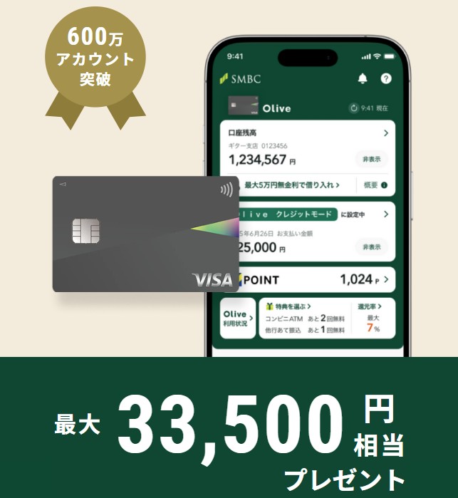 これまでOliveのクレジットカード部分について解説してきましたが、Oliveはそもそも三井住友銀行の「モバイル総合金融サービス」。